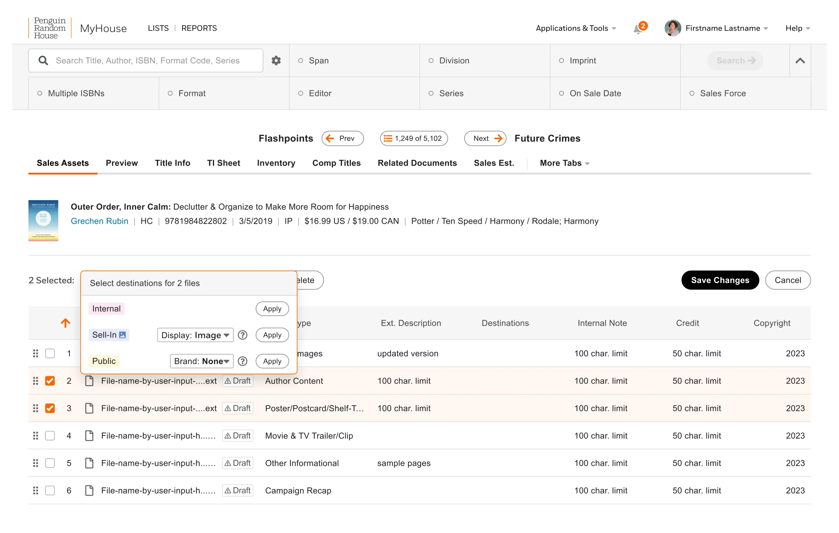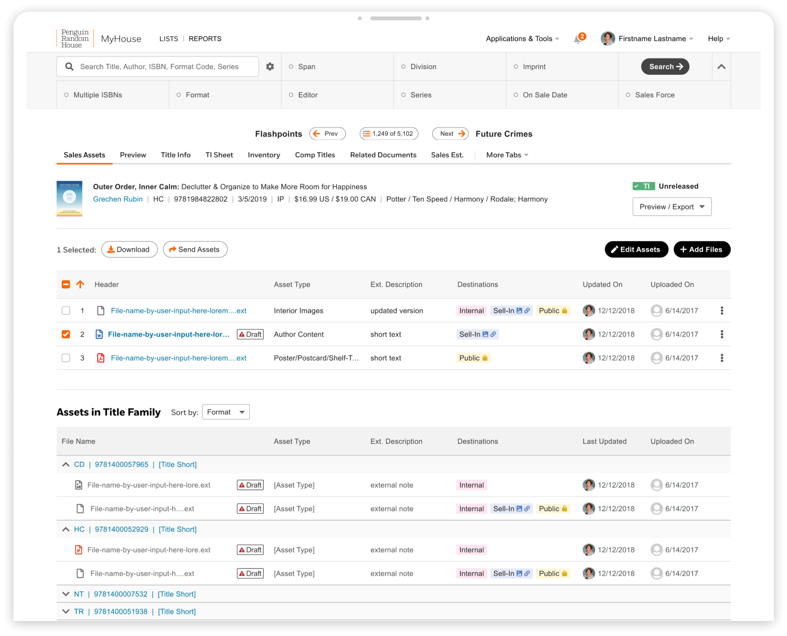 Legacy systems needed to be replaced with a unified platform for managing and distributing a wide variety of sales assets that must accommodate the distinct needs and technical capabilities of different internal departments, such as sales teams needing to upload assets and other stakeholders needing to browse them efficiently. It was necessary for assets to be correctly formatted and delivered to numerous destinations, including internal repositories and external retail partners like Amazon and Barnes & Noble, each with its own unique and strict technical specifications, file limits, and metadata rules, all while migrating data seamlessly from the old systems.