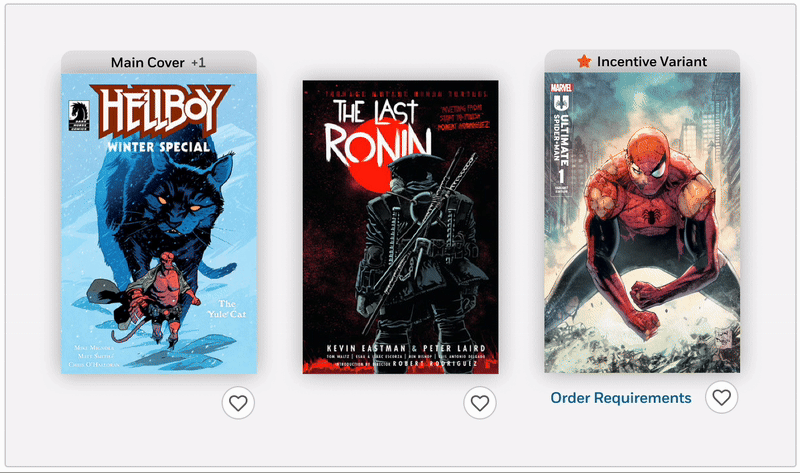 Created comprehensive visual system for complex comic retail requirements including variant cover identifications, incentive ratio qualifications, Final Order Cutoff (FOC) dates, and return eligibility windows