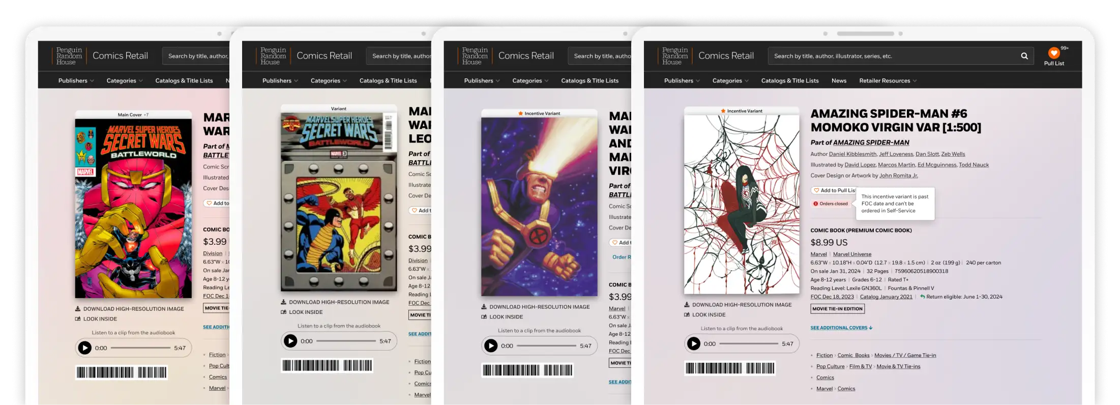 Designed and launched PRHComics.com's B2B integration feature, enabling seamless product discovery-to-order workflow for comic retailers, resulting in streamlined ordering process and successful unveiling at New York Comic Con 2024.